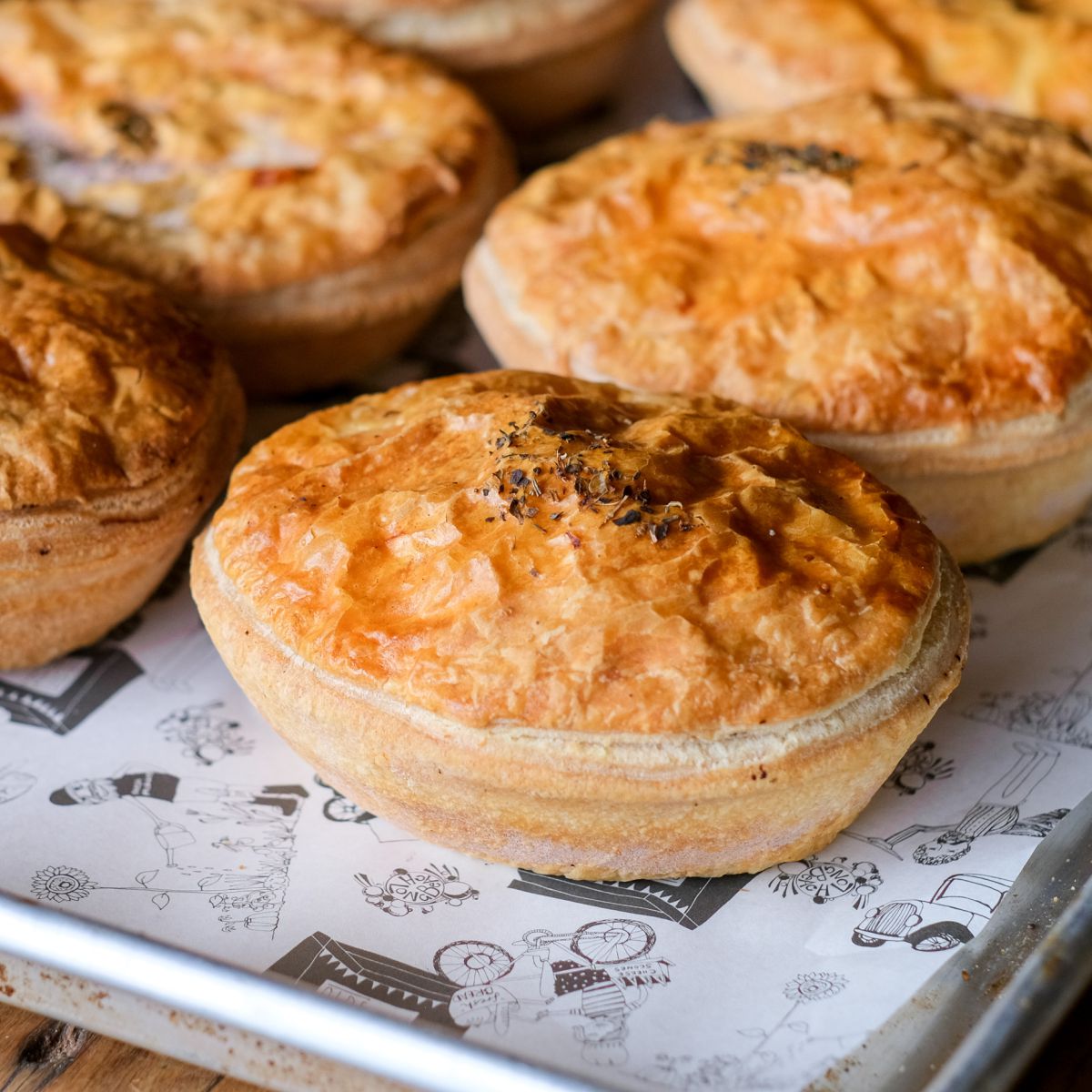 Baker’s Tip: Spraying a little water over your pie before heating helps to keep the pastry from drying out!